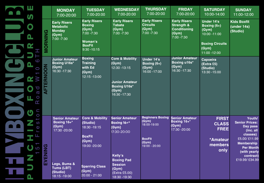 FFLY Boxing Club delivers structured boxing sessions, fitness training, amateur boxing sessions and youth fitness classes designed to build confidence, discipline, and overall wellbeing. Combining boxing fundamentals with strength and conditioning, our sessions offer a full-body workout for all abilities.